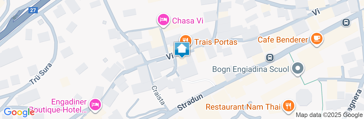 Attika-Suite mit 2,5 Zimmer: Wohnzimmer/Schlafzimmer + 1 Doppelzimmer, Küchennische mit Kühlschrank, Sat-TV, Badezimmer/WC, Ost-Balkon zum Dorfplatz und Brunnen, Dachterrasse zur Südseite über die Dächer von Scuol. Ca. 60 m2, WLAN